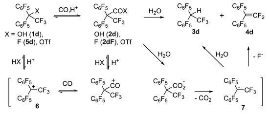 3.3. Carbonylation of Bis(pentafluorophenyl)methanol (1b)