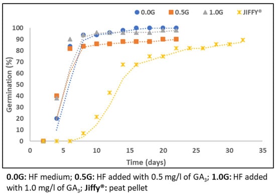 - Katoriya, R.S.; Kureel, M.K.; Mandloi, D.S.; Suryawanshi, K.D.; Lekhi, R.; Rathore, S.S. Seed germination of drumstick Cv. PKM-1 as effected by different concentrations of Gibberellic acid and soaking time. Int. J. Chem. Stud. 2019, 7, 739–744. [Google Scholar]