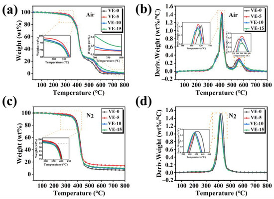 2.5.2. Pyrolysis Behaviors of the VE Composites