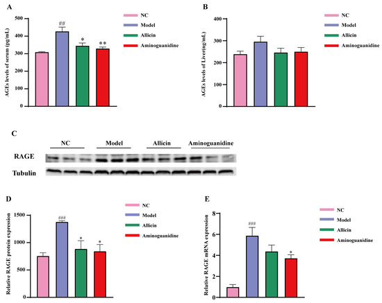 2.2. Allicin Reduces AGE Levels in Diabetic Rats