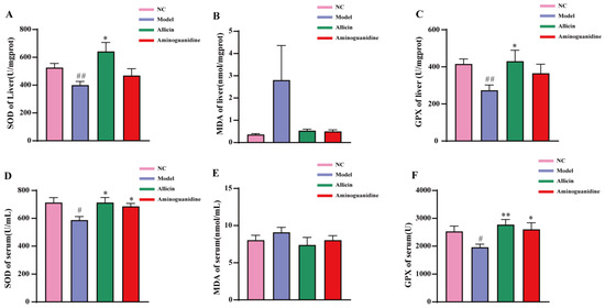 2.3. Allicin Alleviates Oxidative Stress in Rats