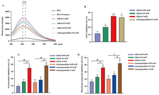 Chicago/Turabian StyleLi, Linzehao, Qinghe Song, Xiandang Zhang, Yan Yan, and Xiaolei Wang. 2022. "Allicin Alleviates Diabetes Mellitus by Inhibiting the Formation of Advanced Glycation End Products" Molecules 27, no. 24: 8793. https://doi.org/10.3390/molecules27248793