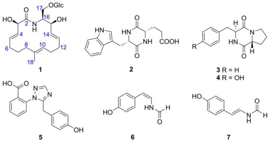 Chemical structures of compounds 1–7.