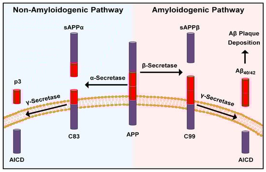 On the other hand, the sequential activity of BACE1 and γ-secretase on APP results in the formation of Aβ isoforms; namely the insoluble Aβ42. This isoform is found in higher concentrations in AD patients and is more prone to aggregation and deposition in the brain resulting in the development of Aβ plaques (i.e., a major hallmark of AD) [15]. Accordingly, this proteolytic sequence has been referred to as the “Amyloidogenic Pathway” and has led to the suggestion that abnormal BACE1 activity is responsible for the pathogenesis of AD and highlighted the potential of BACE1 as a promising target for drug development to counteract AD progression [16].