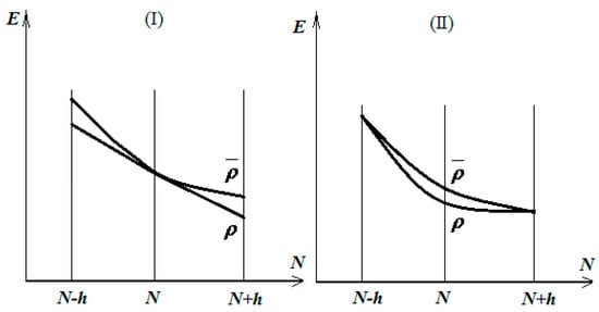 Then, one is interested in minimizing the energy throughout all parabolic classes that link those states. This minimizing procedure can be undertaken immediately in two distinct ways: by simultaneously minimizing the energetic values of the states | N h and | N + h or by only acting on the energy in the “point” | N of the energetic shape, as in cases I and II in Figure 1, respectively [13,14].