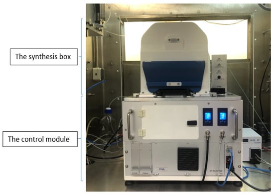 - Shao, X.; Hoareau, R.; Runkle, A.C.; Tluczek, L.J.M.; Hockley, B.G.; Henderson, B.D.; Scott, P.J.H. Highlighting the versatility of the Tracerlab synthesis modules. Part 2: Fully automated production of [11C]-labeled radiopharmaceuticals using a Tracerlab FXC-Pro. J. Label. Compd. Radiopharm. 2011, 54, 819–838. [Google Scholar] [CrossRef]