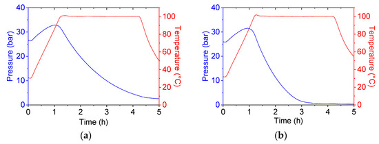 Pressure profile during the glycidol conversion to the corresponding cyclic carbonate for Imi/1Al_SBA-15 (a) and Imi/5Al_SBA-15 (b). They, respectively, refer to Entries 3 and 4 in Table 2.