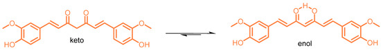 Keto-enol tautomeric forms of curcumin (CUR).