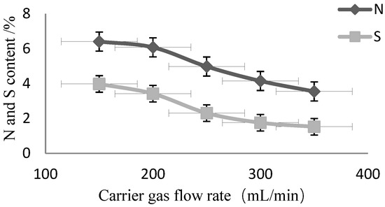 Effect of Carrier gas flow rate on N and S content. (n = 6) Herein, the CRM of nori (GBW10023) was measured by the TCD using different gas flow rates. Other experimental conditions were performed as per Table 1.