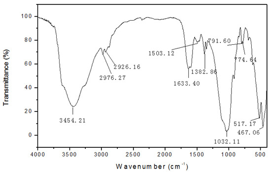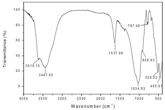 Since the composition of bentonite is Al2O3 4SiO2 H2O + nH2O, the front H2O is structural water (crystal water), and the back nH2O is adsorbed water, their infrared spectra are different. The theoretical molecular formula of montmorillonite is (OH) 4Si8Al4O20. Its unit cell system consists of two layers of silicon-oxygen tetrahedra sandwiched by a layer of aluminum–oxygen octahedra arranged in parallel. Al3+ in octahedron of montmorillonite and (or) Si4+ in tetrahedron are frequently partially (or entirely) replaced by additional cations to form some chemical varieties of bentonite. The absorption peaks of Si-O bond stretching vibrations and Al-O vibrations of silicon oxide tetrahedra are the most prominent features of bentonite at wave numbers 1000–1100 cm−1 in the infrared spectrum. Without this absorption peak, it has no crystalline structure. The basic frequency oscillations and the main absorption peaks corresponding to the IR spectral activity of the sodium bentonite structures are listed in the Table 2 below.