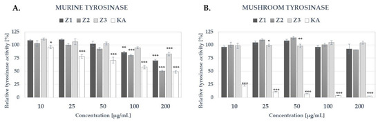 3.2.6. Tyrosinase Inhibitory Activity