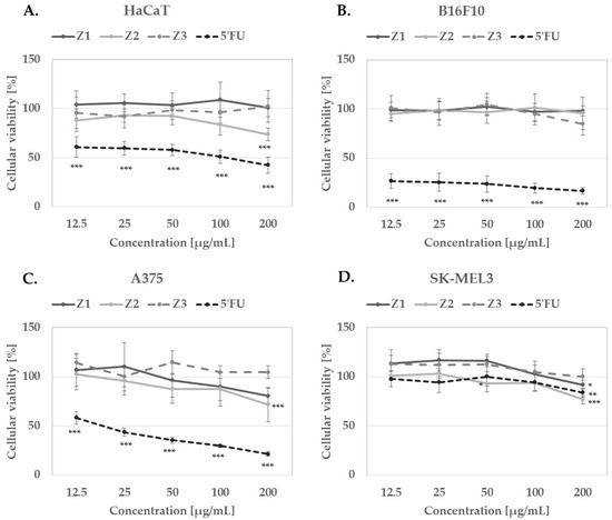 - Repetto, G.; del Peso, A.; Zurita, J.L. Neutral red uptake assay for the estimation of cell viability/cytotoxicity. Nat. Protoc. 2008, 3, 1125–1131. [Google Scholar] [CrossRef] [PubMed]