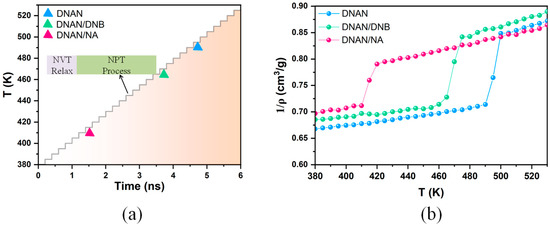 - Liu, Y.; Lai, W.; Yu, T.; Ma, Y.; Guo, W.; Ge, Z. Melting Point Prediction of Energetic Materials via Continuous Heating Simulation on Solid-to-Liquid Phase Transition. ACS Omega 2019, 4, 4320–4324. [Google Scholar] [CrossRef]