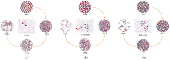 - Li, X.; Ju, X. Molecular Dynamic Simulation of Melting Points of Trans-1,4,5,8-tetranitro-1,4,5,8-tetraazadacalin (TNAD) with Some Propellants. Chin. J. Chem. Phys. 2014, 27, 412–418. [Google Scholar] [CrossRef][Green Version]