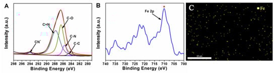 (A) The XPS spectra of C 1 s and (B) Fe 2p core level of MCF-IL-Fe(CN)63−; (C) SEM-EDS element-mapping image of Fe in MCF-IL-Fe(CN)63−.