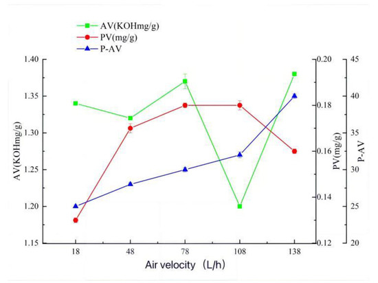 Shook them and changed their positions in the thermostat at will. The acid value (AV), peroxide value (PV), and anisidine value (P-AV) were measured at 0, 3, 6, 9, 12, and 15 days after oxidation in order to understand the formation kinetics of oxidation products of the above-mentioned oils and fats.