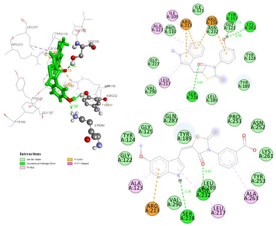 - Horishny, V.; Kartsev, V.G.; Matiychuk, V.S.; Geronikaki, A.; Petrou, A.; Glamoclija, J.; Ciric, A.; Sokovic, M. 5-(1H-Indol-3-ylmethylene)-4-oxo-2-thioxothiazolidin-3-yl)alkancarboxylic acids as antimicrobial agents. Synthesis, biological evaluation and molecular docking studies. Molecules 2020, 25, 1964. [Google Scholar] [CrossRef] [PubMed] [Green Version]