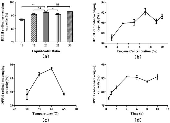 3.3. Single-Factor Experiments to Assess DH and DPPH· Radical Scavenging Ability
