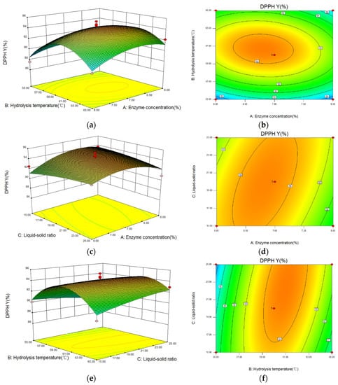 | No. | A: Enzyme Concentration | B: Hydrolysis Temperature | C: Liquid-Solid Ratio | Response 2 DPPH Scavenging Ability |