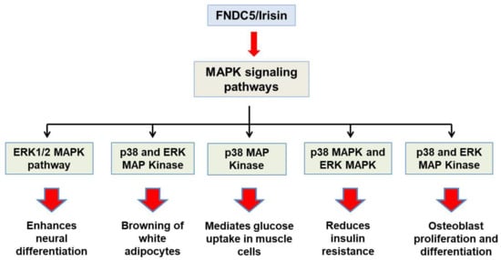Schematic representation of physiological roles of Fndc5/irisin through MAPK signaling pathways.