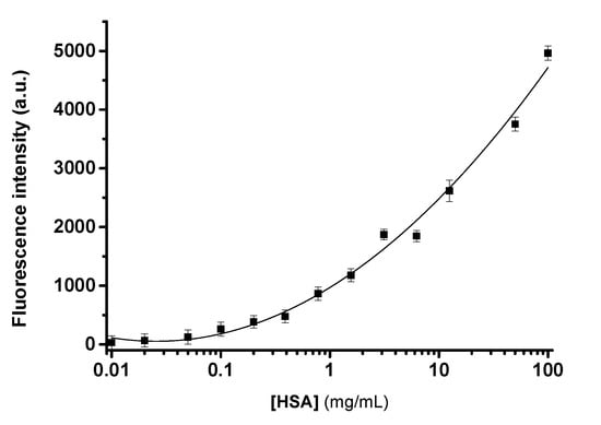 - Wang, R.E.; Tian, L.; Chang, Y. A homogenous fluorescent sensor for human serum albumin. J. Pharm. Biomed. Anal. 2012, 63, 165–169. [Google Scholar] [CrossRef] [Green Version]