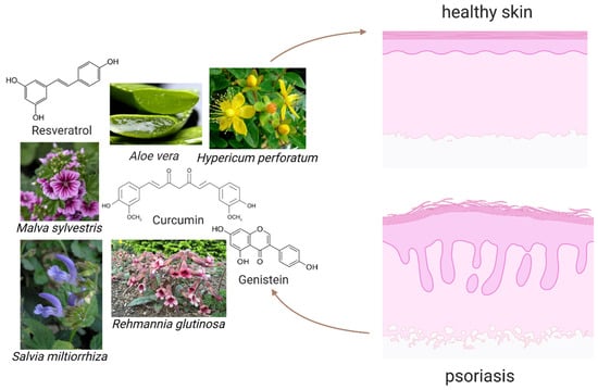 Moreover, the review presents the different in vitro, in vivo, and clinical studies with plant-derived compounds and investigates their role in the treatment of psoriatic symptoms and their immunomodulatory and anti-inflammatory effect on the immune cell populations and cytokines responsible for psoriasis development. To better understand the role of natural derived substances and present their potency in psoriasis treatment, this article comprises detailed data about the pathogenesis of this autoimmune disease in regards to inflammation process and oxidative stress, as well as the molecular interactions between natural active compounds and immune system response.