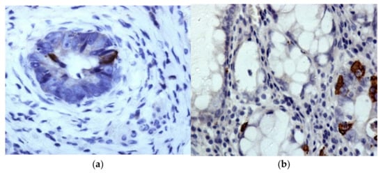 - Grabowski, P.; Schindler, I.; Anagnostopoulos, I.; Foss, H.D.; Riecken, E.O.; Mansmann, U.; Stein, H.; Berger, G.; Buhr, H.J.; Scherubl, H. Neuroendocrine differentiation is a relevant prognostic factor in stage III-IV colorectal cancer. Eur. J. Gastroenterol. Hepatol. 2001, 13, 405–411. [Google Scholar] [CrossRef] [PubMed]
