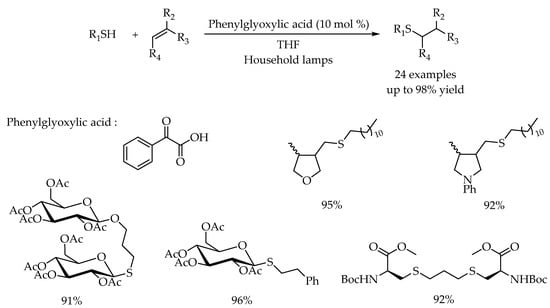 Visible-light-photocatalyzed thiol-ene reaction by phenylglyoxylic acid.