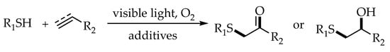 2.4. Photocatalytic Anti-Markovnikov Thiol–Ene/Yne Reactions for Synthesis of Sulfoxides