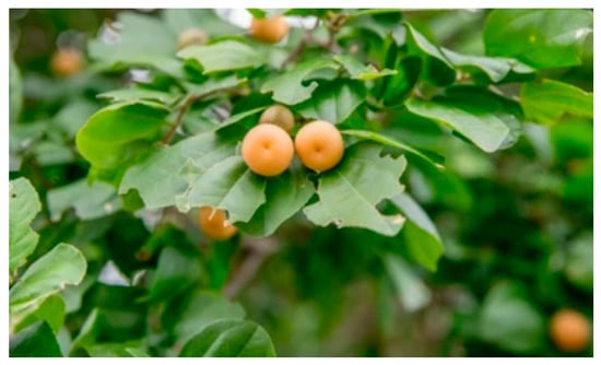 Juá (Ziziphus joazeiro M.) fruit. Source: https://www.shutterstock.com/pt/image-photo/fruits-de-boi-1076258687 (accessed on 15 January 2022).