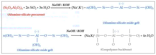 - Duxson, P.; Lukey, G.C.; Separovic, F.; van Deventer, J.S.J. Effect of alkali cations on aluminum incorporation in geopolymeric gels. Ind. Eng. Chem. Res. 2005, 44, 832–839. [Google Scholar] [CrossRef]