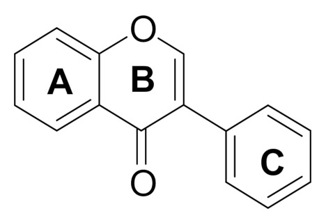 Genistein is a plant secondary metabolite from the isoflavone group. Its structure is based on the 3-phenylchromen-4-one configuration. It consists of two aromatic benzene rings (A and C) and one non-aromatic heterocyclic pyran ring (B) (Figure 1).