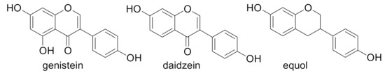 In the human body, the glucoside is converted into an active aglycone. Genistein can later be transformed into 5-hydroxy-equol by human intestinal bacterium Slackia isoflavoniconvertens [9], while one of the most important active metabolites of daidzein is equol (4′,7-isoflavandiol) (Figure 2) [10].
