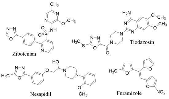Some reported 1,3,4-oxadiazole derivative drugs.