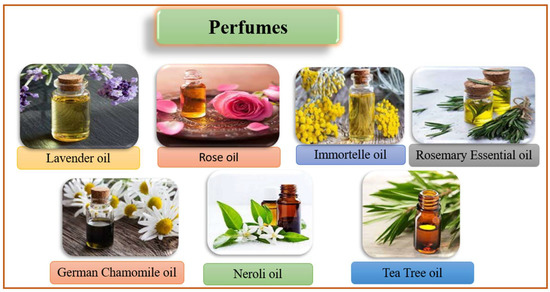 | Natural plant source | Rose, Jasmine, Lavender, Lemon, etc. | [34] |