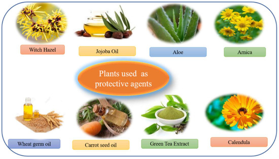 | Calendula | Soothes and softens skin, promotes cell formation | Calendula officinalis | Calendula cream | [74] |