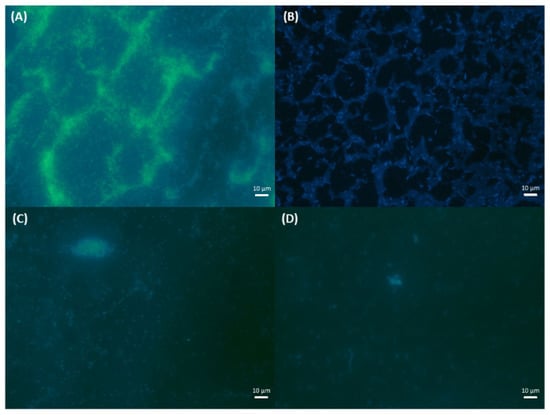 The following compounds were under investigation: HABH (10−4 M/mL), CuHABH, (10−4 M/mL), Hesperetin (10−4 M/mL) and DMSO. The concentration of 3 × 10−4 M/mL was used for all tested compounds. The growth and adhesion abilities of the bacterial strains in the presence of the tested compounds was carried out following previously published methods [45]. For the bacterial cultivation, the minimal medium of 50-fold diluted buffered peptone water (Merck, Darmstadt, Germany) was used because, according to the literature, biofilm formation may be stimulated in environments poor in carbon sources [46]. In this culture medium, the availability of the organic compounds was very limited and equal 0.1 g/L [45]. The sterile minimal medium was poured into sterile 25 mL Erlenmeyer flasks, into which sterile glass carriers (Star Frost 76 × 26 mm, Knittel Glass, Braunschweig, Germany) were placed vertically in such a way that half of the carrier was immersed in the medium while the other part remained outside. The amount of bacterial inoculum was standardized densitometrically in McFarland degrees [1 °McF] to obtain a cell concentration in the culture medium approximately equal to 5 × 103–1 × 104 CFU/mL at the start of each experiment. The samples were incubated at a temperature of 25 °C on a laboratory shaker (135 rpm) for 6 days. Growth of the bacterial cultures was evaluated in °McF using a densitometer DEN-1 (Merck, Darmstadt, Germany). In turn, analysis of the bacterial adhesion to the glass carriers was performed using luminometry. For the luminometric tests, the carrier was removed from the culture medium, rinsed with sterile distilled water and swabbed using free ATP sampling pens (Merck, Darmstadt, Germany). The measurements were reported in RLU/cm2 using a HY-LiTE 2 luminometer (Merck, Darmstadt, Germany). These experiments were conducted in triplicate, and the standard deviation was calculated. In addition, the bacterial attachment was observed using fluorescence microscopy (Nikon) after DAPI staining.