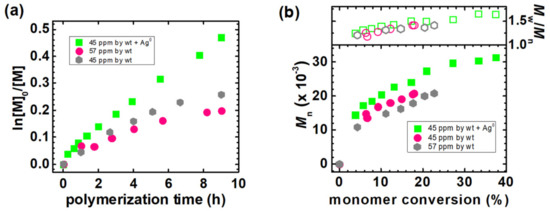 - Williams, V.A.; Matyjaszewski, K. Expanding the ATRP toolbox: Methacrylate polymerization with an elemental silver reducing agent. Macromolecules 2015, 48, 6457–6464. [Google Scholar] [CrossRef]
