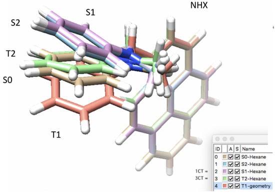| Solvent | S0 | S1 | S2 | T1 | T2 |