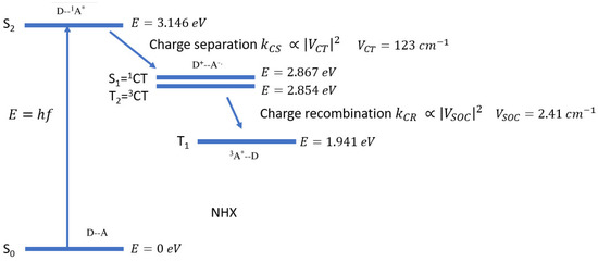 - Buck, J.T.; Boudreau, A.M.; DeCarmine, A.; Wilson, R.W.; Hampsey, J.; Mani, T. Spin-Allowed Transitions Control the Formation of Triplet Excited States in Orthogonal Donor-Acceptor Dyads. Chem 2019, 5, 138–155. [Google Scholar] [CrossRef]
