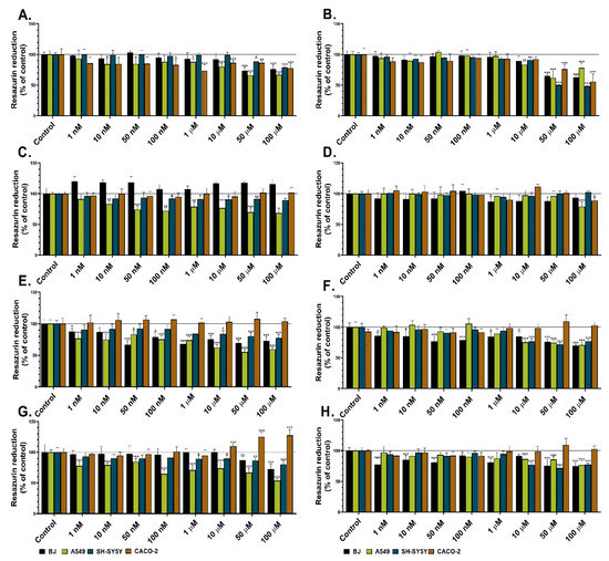 - Czekanska, E.M. Assessment of cell proliferation with resazurin-based fluorescent dye. In Mammalian Cell Viability; Humana Press: Totowa, NJ, USA, 2011; pp. 27–32. [Google Scholar] [CrossRef]