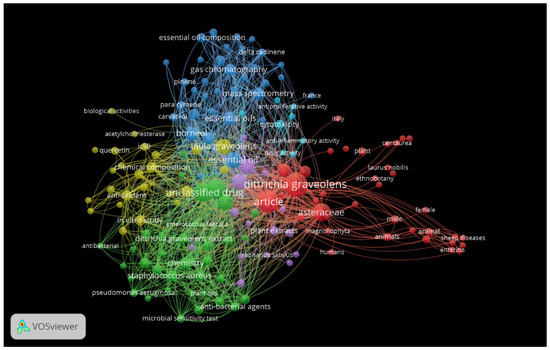 The bubble map (Figure 1) created with VOSviewer software, version 1.6.17 (© 2022, Centre for Science and Technology Studies, Leiden University, Leiden, The Netherlands) for Windows, is intended to offer a rapid visualization of the interdisciplinary work involved in this review to boost novel projects related to D. graveolens.