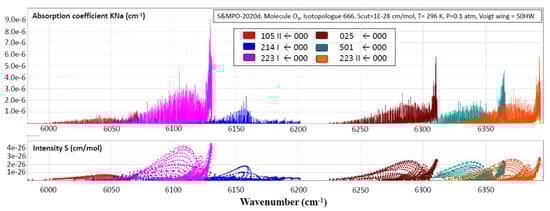 - Barbe, A.; Mikhailenko, S.N. Cold and hot bands of the (023)/(122)/(400) states of the ozone molecule. In Proceedings of the 25th International Symposium on Atmospheric and Ocean Optics: Atmospheric Physics, Novosibirsk, Russia, 30 June–5 July 2014; pp. A124–A127. Available online: https://symp.iao.ru/files/symp/aoo/20/Section%20A.pdf (accessed on 15 July 2014).