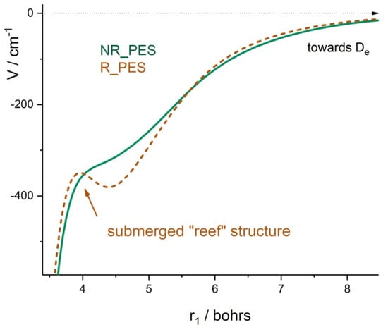 Within the traditional spectroscopic approach, which is limited by one potential well in the electronic ground state, the symmetry properties of the ozone ro-vibrational states are usually characterized by the geometrical point group as reviewed by Flaud and Bacis []. The “symmetric” isotopic species (having the same edge atoms) belong to the C2v point group, whereas asymmetric ones belong to the Cs group. In the spectroscopic literature, it is customary to classify the rotational levels of each vibrational state (V1V2V3) of such molecules by a set of three rotational numbers, J, Ka, and Kc [,,,], where J is the quantum number of the total angular momentum, while Ka and Kc correspond to projections on the a- and c-axes of inertia. Thus, a set of six numbers is used to label the vibration–rotation energy level (the numbers Ka and Kc are often used as subscripts of the number J)—(V1V2V3) J Ka Kc.