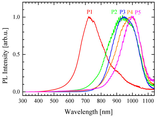 Photoluminescence spectrum of thin films of P1–P5.