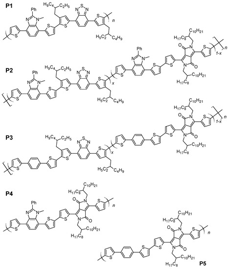 - Müllen, K.; Pisula, W. Donor–Acceptor Polymers. J. Am. Chem. Soc. 2015, 137, 9503–9505. [Google Scholar] [CrossRef] [PubMed]