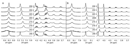 2.3. Variable Temperature 1H-NMR and Fluorescence Experiments
