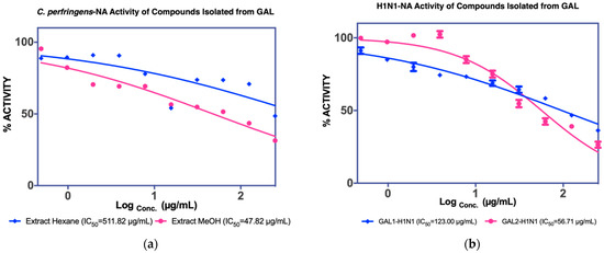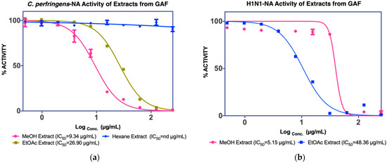 | EtOAC fraction IC50 C. perfringens-NA 38.39 µg/mL IC50 NA-H1N1 48.36 µg/mL | F1 nd c | - | ||
