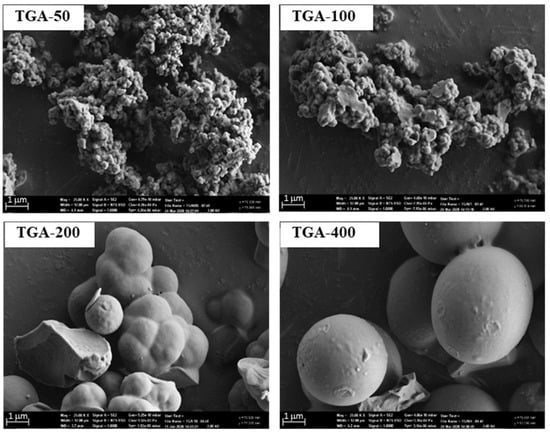 Figure 1. However, the TGA-200 and TGA-400 MIPs formed more discrete spherical particles. The morphology of MIPs is largely dependent on the type of synthetic method [