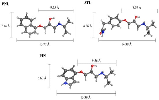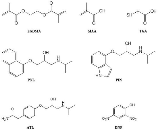 Figure 3 show that half of their structures is identical. It is possible for PNL to be partially imprinted by virtue of its linear ‘tail’ group, resulting in binding cavities that could also fit the linear tail groups of ATL and PIN. These partially imprinted sites could be occupied by PNL, ATL, or PIN in the same manner and could also be displaced by each other.